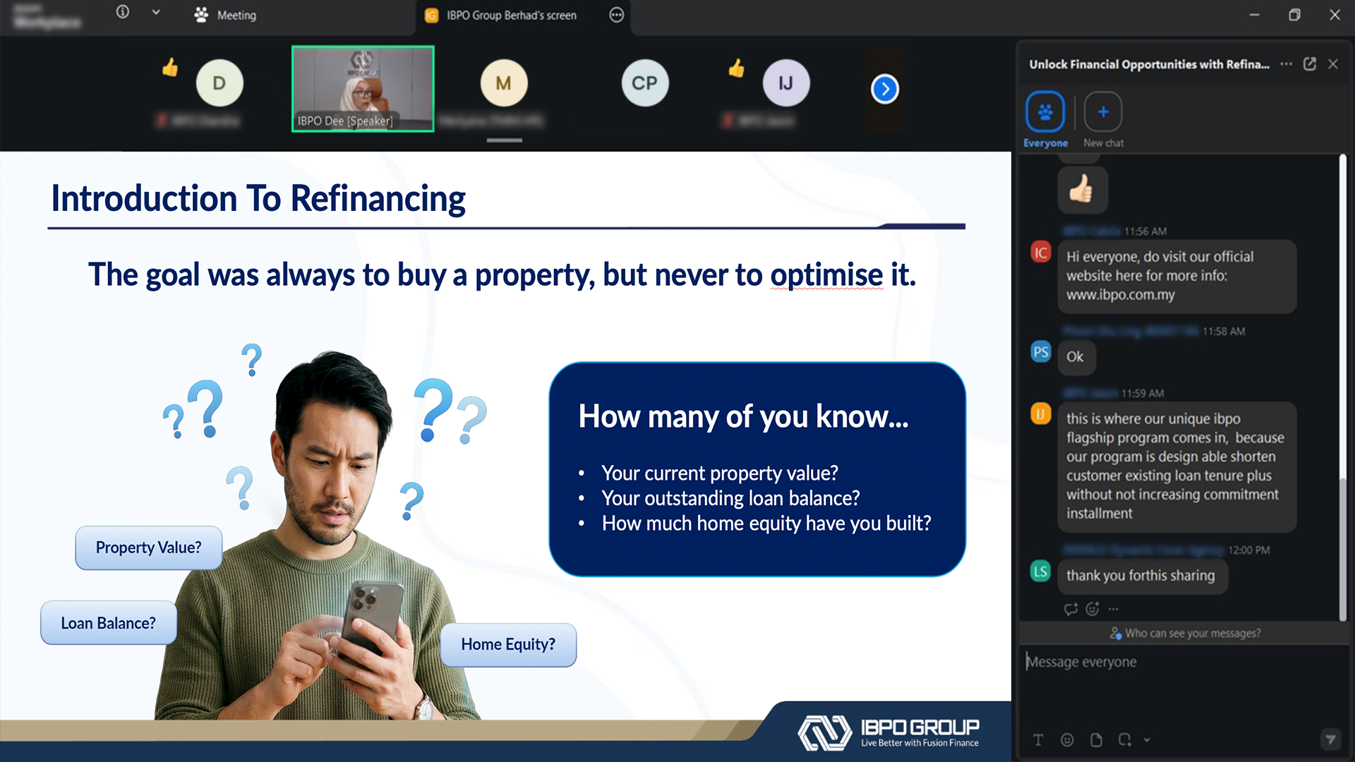 02 April 2026 – IBPO Group Berhad successfully conducted a one-hour interactive online financial talk in collaboration with Tokio Marine Insurans (Malaysia) for their insurance agents for a practical and engaging discussion on home refinancing.